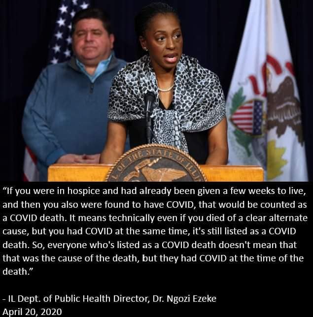 [*1] Death numbers for the COVID-19 pandemic have been theatrically over-stated (to put it mildly) for political purposes, per the CDC and Illinois Public Health director, for some of many examples: